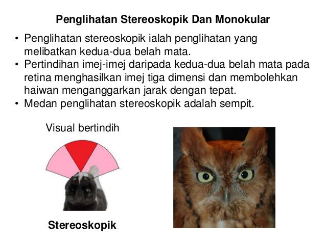 2 jenis penglihatan haiwan. Jan 21 2013 2. Nyatakan dua jenis haiwan yang mempunyai penglihatan monokular. A Penglihatan stereoskopik Pertindihan medan penglihatan Medan penglihatan mata kanan Medan penglihatan mata kiri b Penglihatan monokular Medan penglihatan mata kanan Medan penglihatan mata kiri 2.